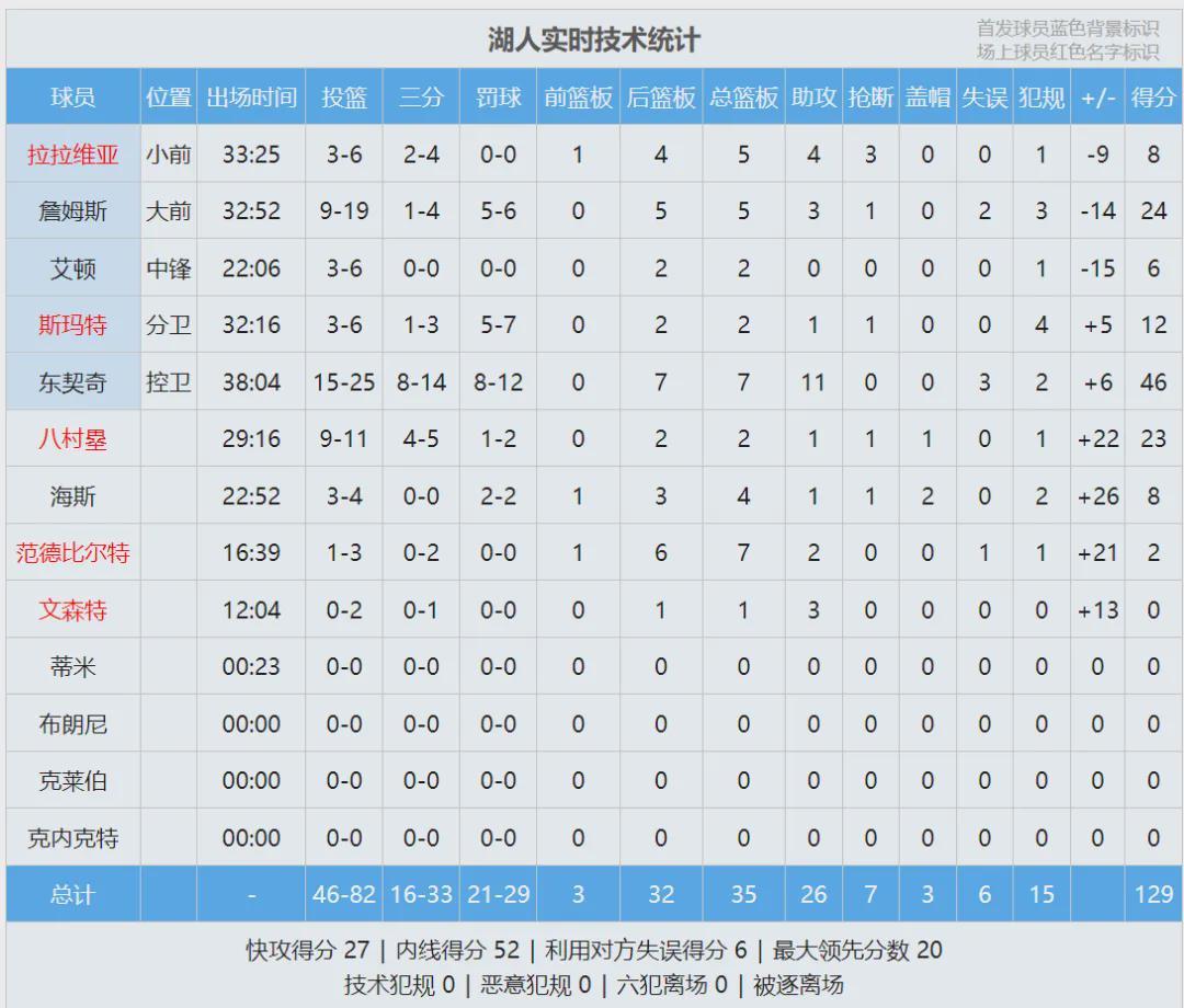 海斯快攻玩起胯下扣篮,公牛被打懵了。最后1分钟垃圾时间,公牛主场球迷高喊:“我们要布朗尼”,但湖人并没有让布朗尼上场。全场结束,湖人129-118战胜公牛。克内克特跌出轮换,今天1分钟都没打,他上次出战还是1月19日。
